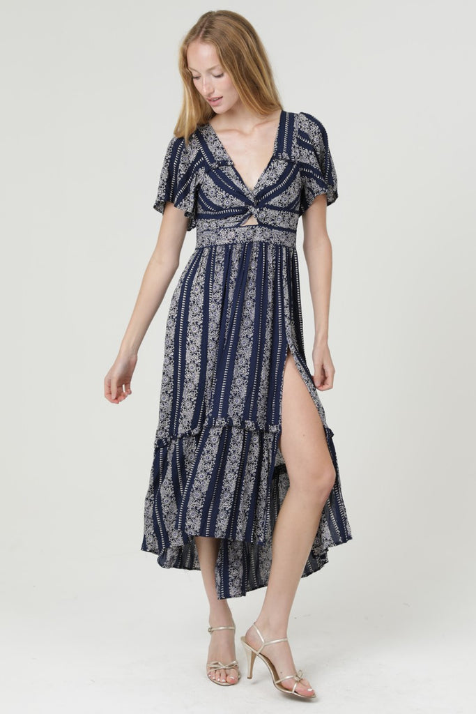 V Neck Twist Front Cut Out Maxi Dress With Slit