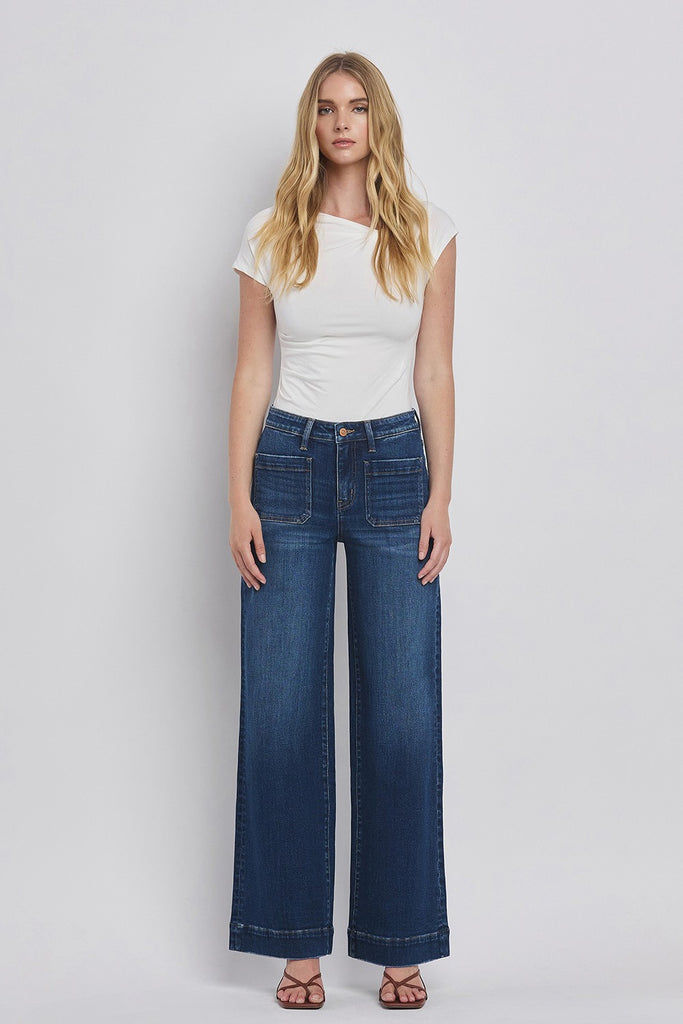 High Rise Patch Pocket Trouser Hem Wide Jeans