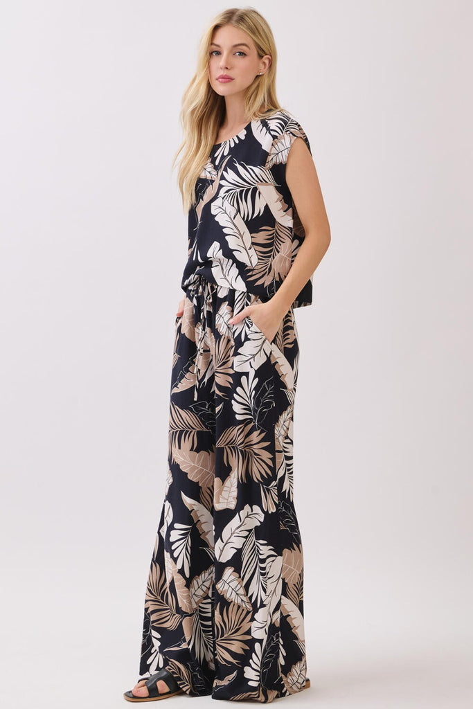 Waist ruffled elastic with tunnel tie wit pocket detailed wide leg pants