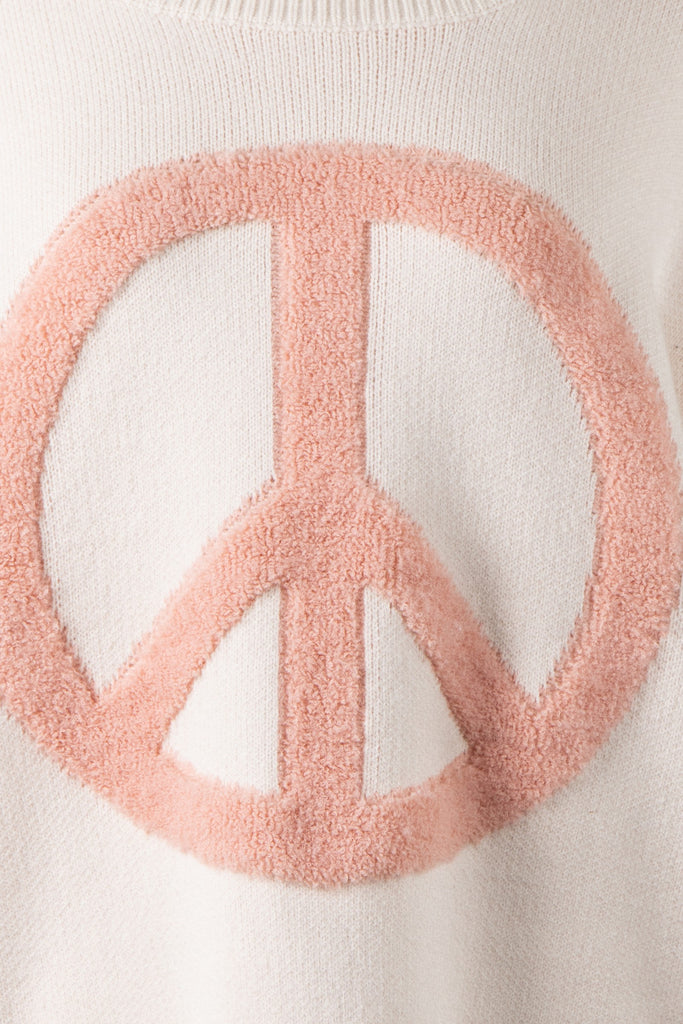 Peace Sign Textured Cozy Sweater Top Soft fluffy smooth peace sign pattern duo textured fuzzy outline cozy sweater top