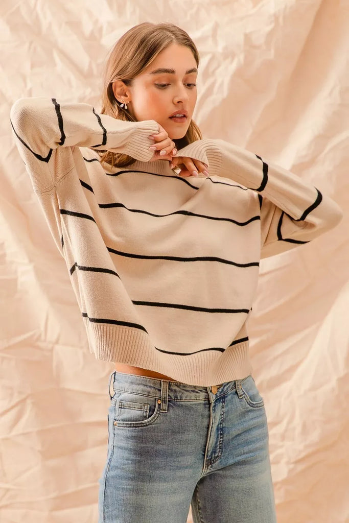 Stay stylish and versatile with this Stripe Crew Neck Basic Essential Sweater Top. The classic stripe pattern adds a timeless and chic touch to this sweater. Featuring a crew neck design, it offers a simple and flattering silhouette. This essential piece is perfect for layering or wearing on its own, making it a versatile wardrobe staple. Pair it with your favorite jeans, skirts, or pants for a polished and effortless look that can be dressed up or down for any occasion. Update your wardrobe with this must-have Stripe Crew Neck Sweater Top for a classic and sophisticated style.