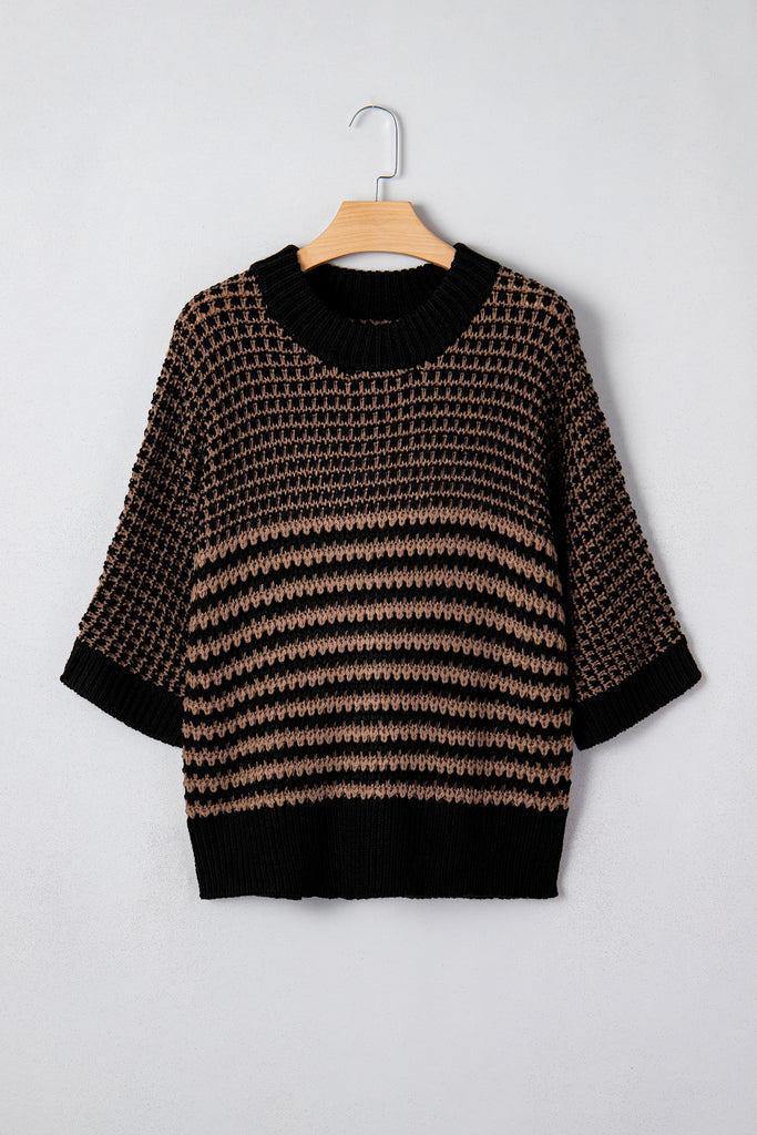 Black Stripe 3/4 Draped Sleeve Slouchy Sweater