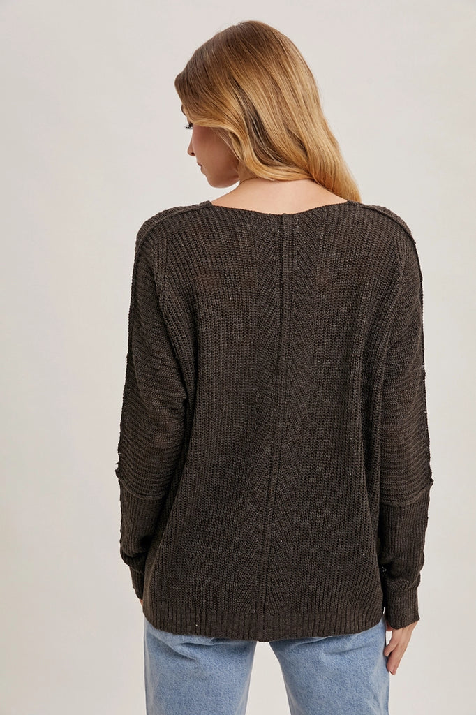 Sheer Loosefit V-Neck Knit Sweater Pullover