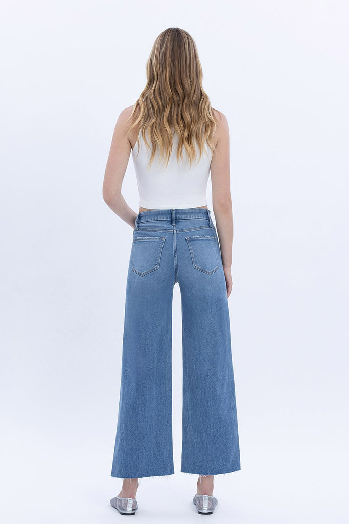 High Rise Comfort Waistband Crop Wide Jeans