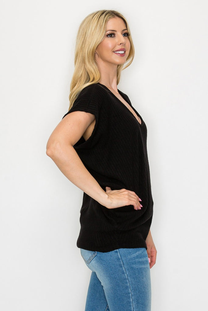 Soft brushed rib s/s v neck