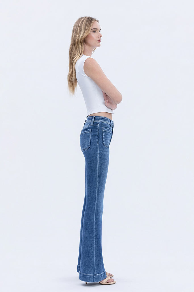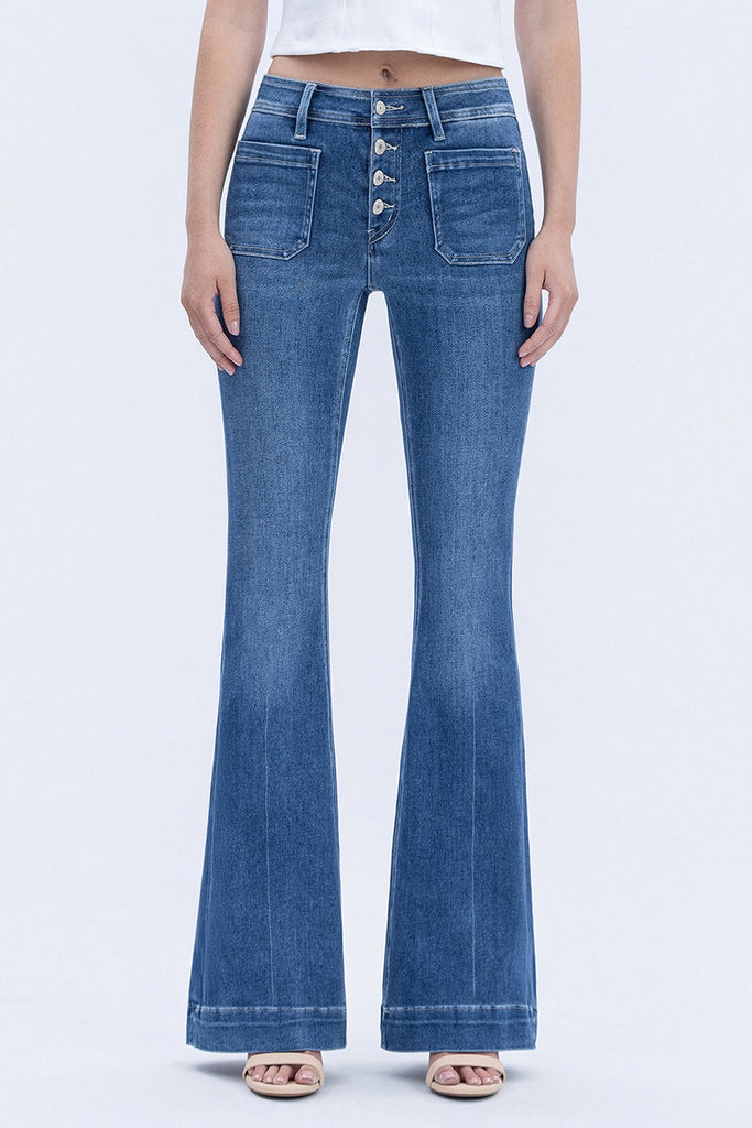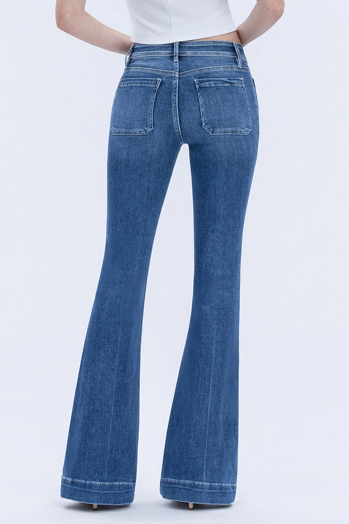 Mid Rise Button Fly Trouser Hem Flare Jeans