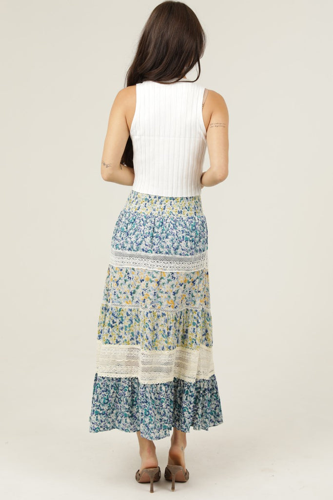 Tiered Lace Trim Smocked Waist Maxi Skirt