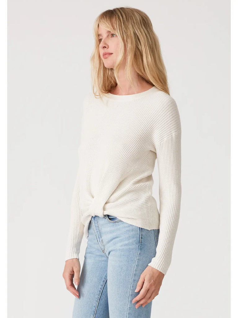 Waffle Knit Crew Neck Front Knot Pullover Sweater